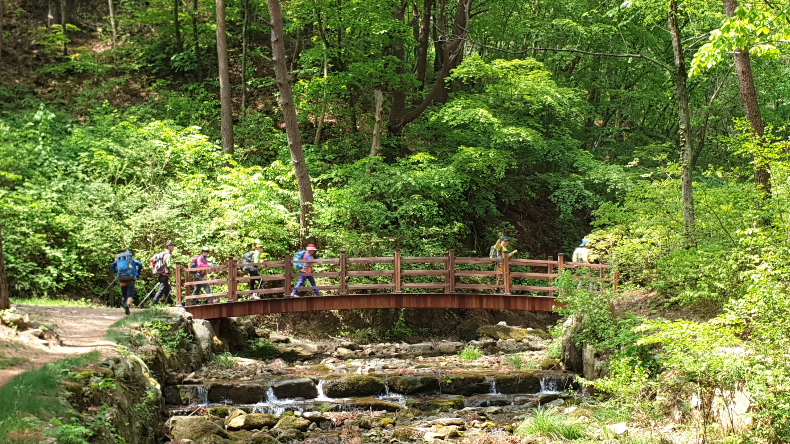 나무 다리도 만들어 놓아 주위의 푸르름과 어우려져 보기 좋네요.