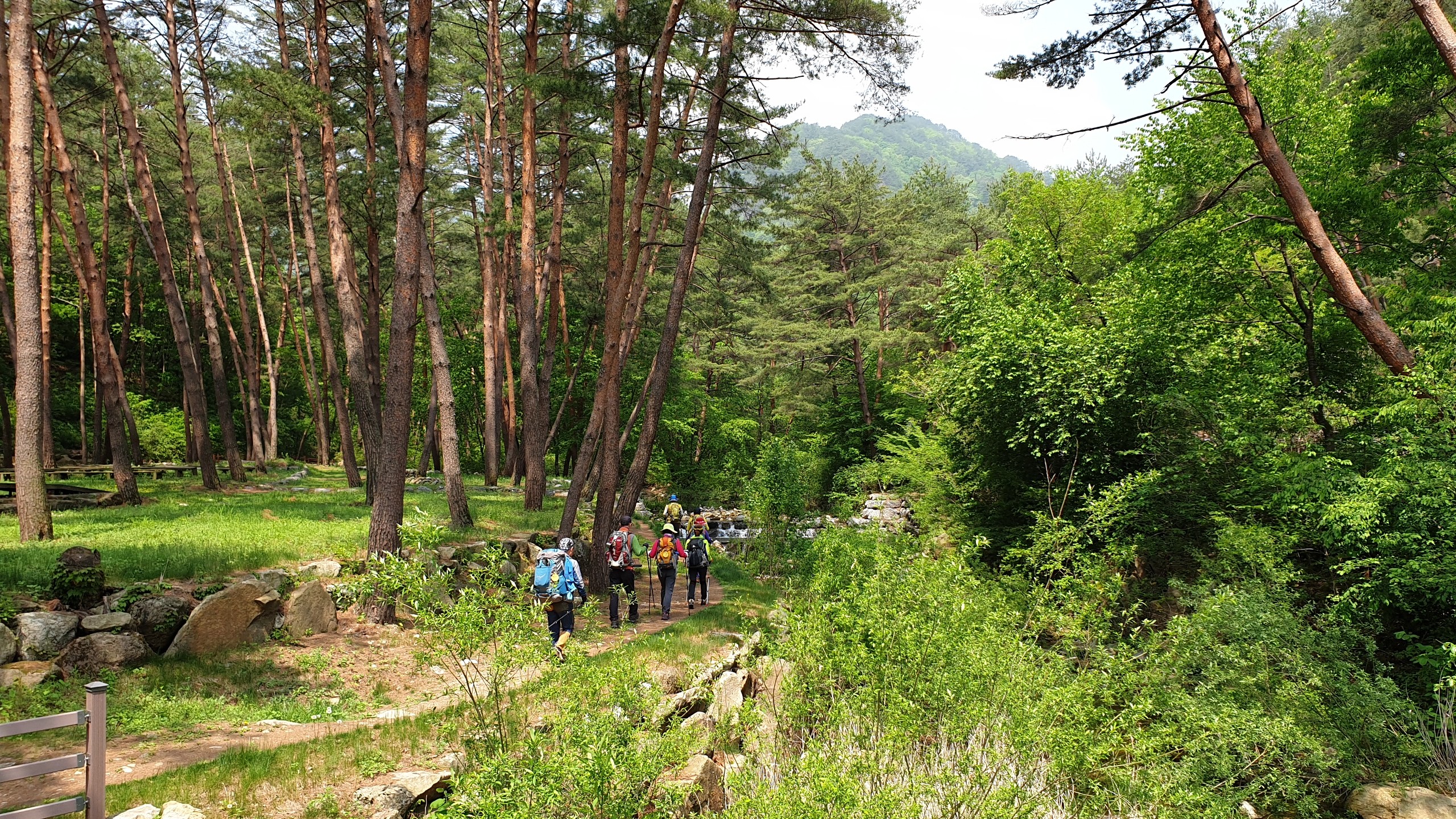 마지막 계곡이라는 푯말이 있는데요. 여기까지는 산세가 유하고 완만합니다, 여기부터거 좀 가파르지만, 산에 많이 다니는 사람들은 흑ㄹ땅이라 여유로울 수 있어요