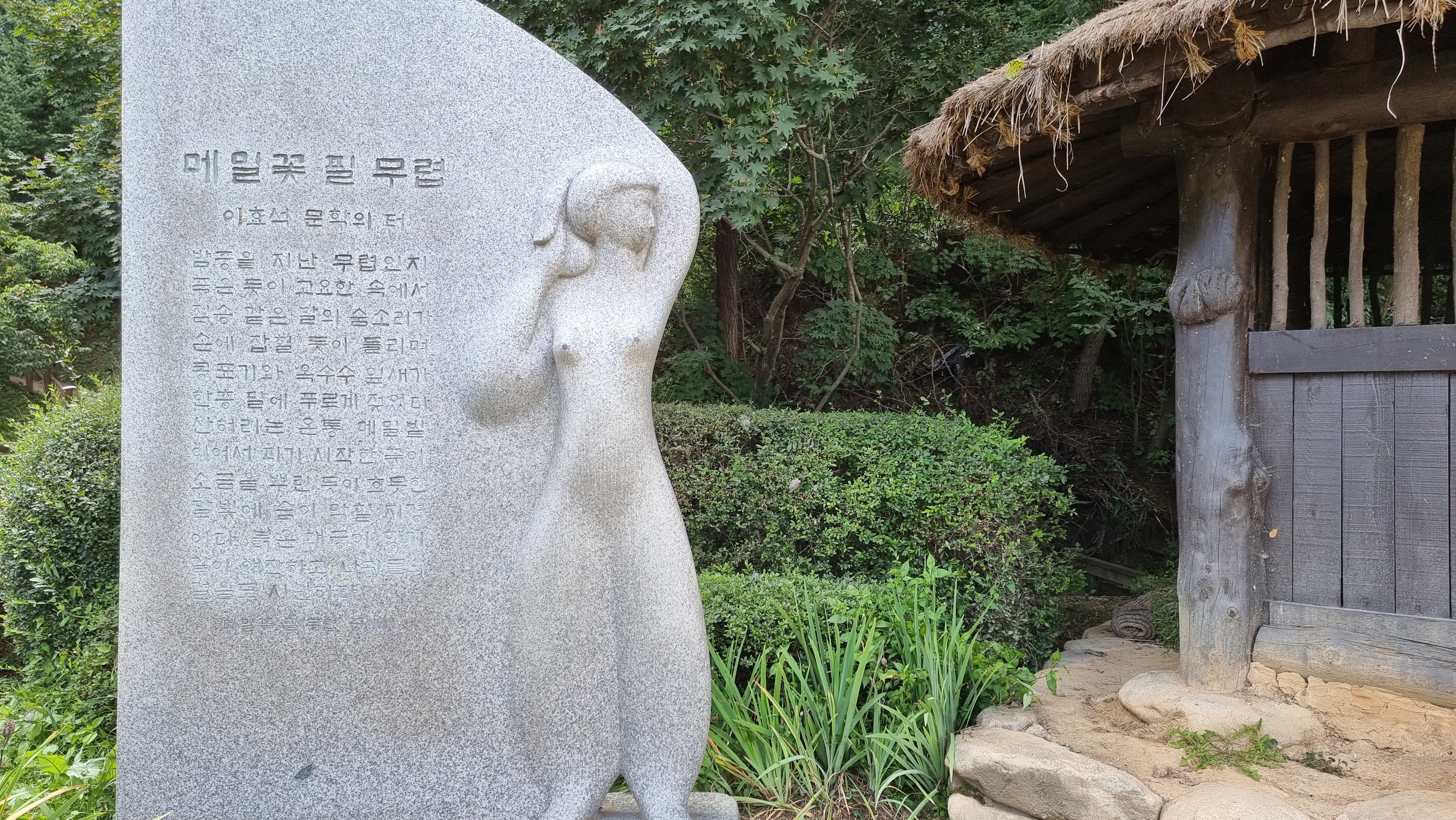 여기에 가려면 메밀꽃 축제장 메밀밭 길가에 차를 주차시키고 가도 되고, 이효석 문학관 매표소에서 우측으로 길을 내놔서 그리가도 되기도 합니다.
