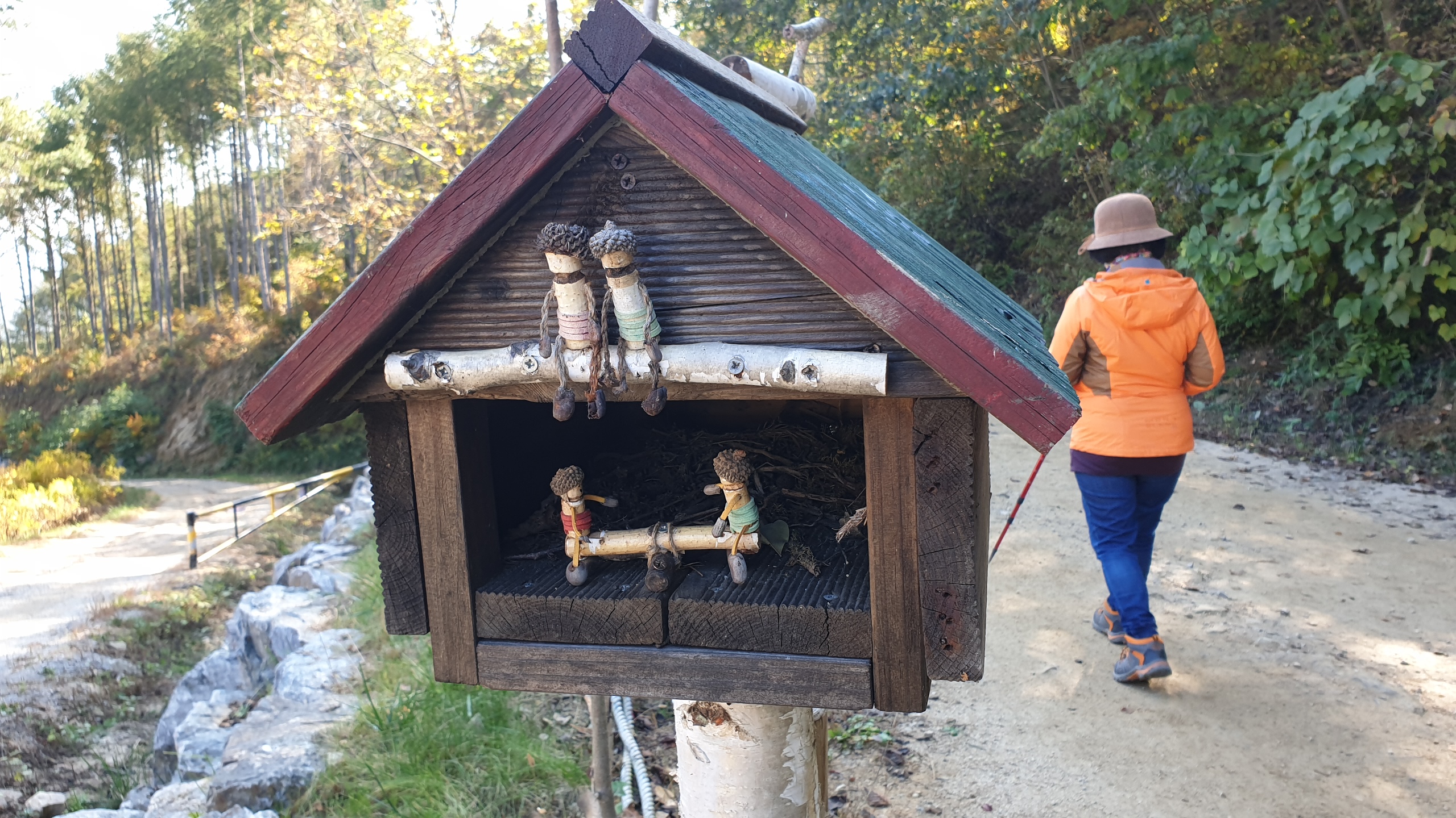 입구에 보면 이쁘게 만들어 놓은 목각인형이 나무에 걸쳐 앉아 있는 모습이 인상적이네요.