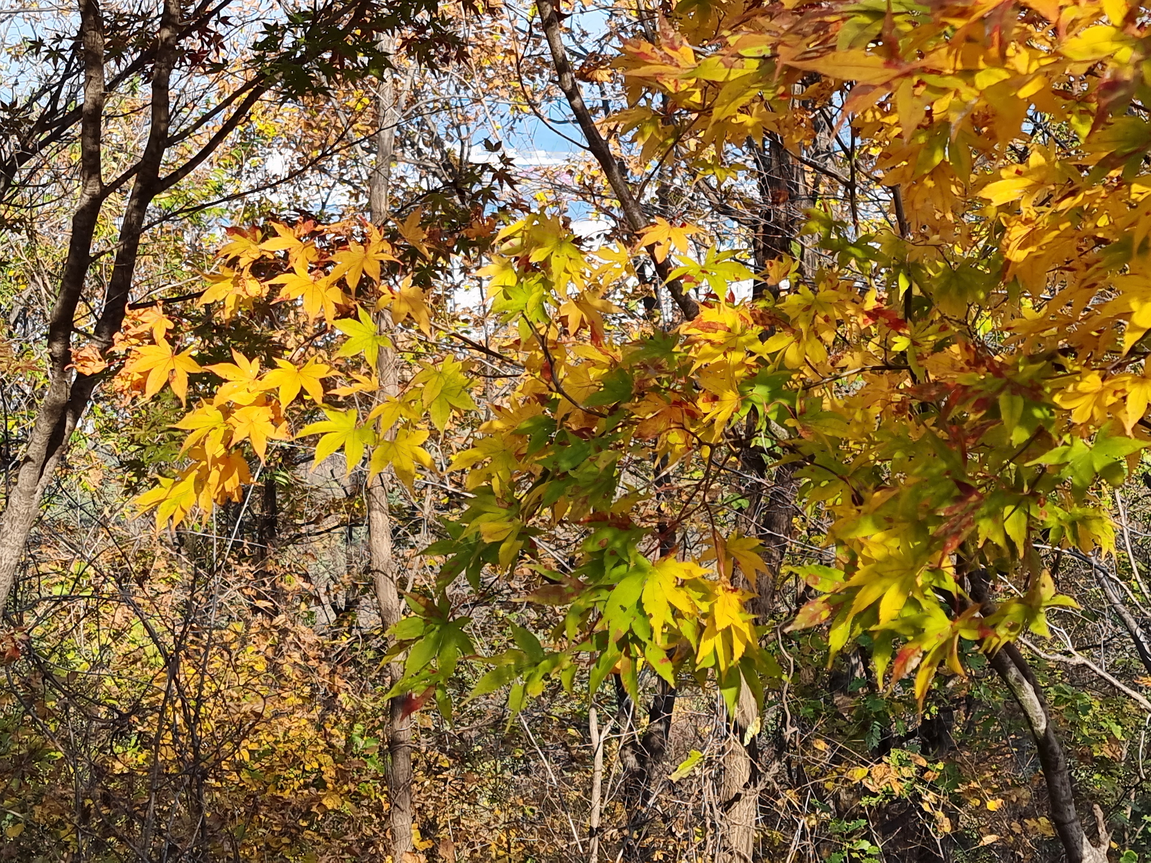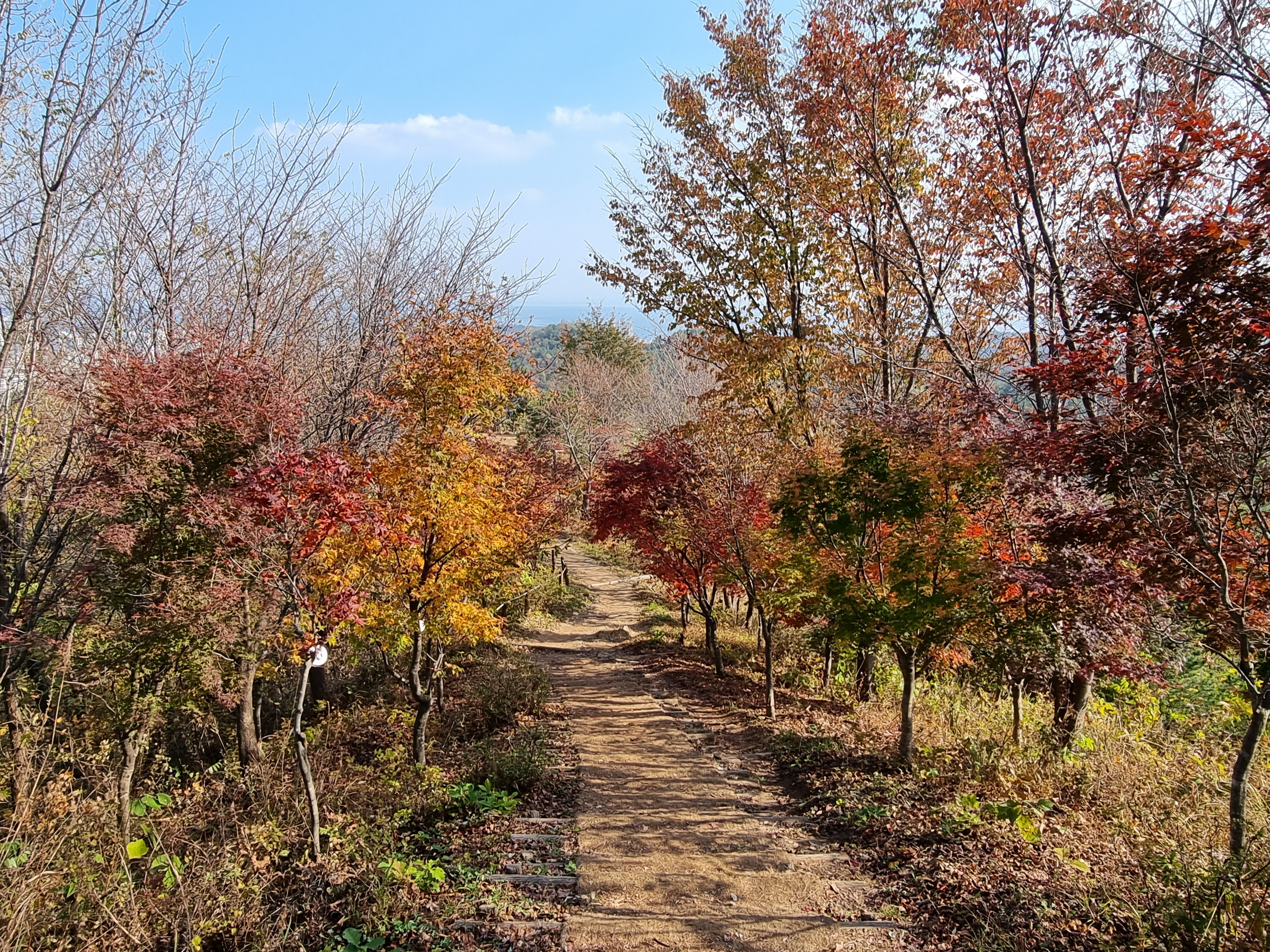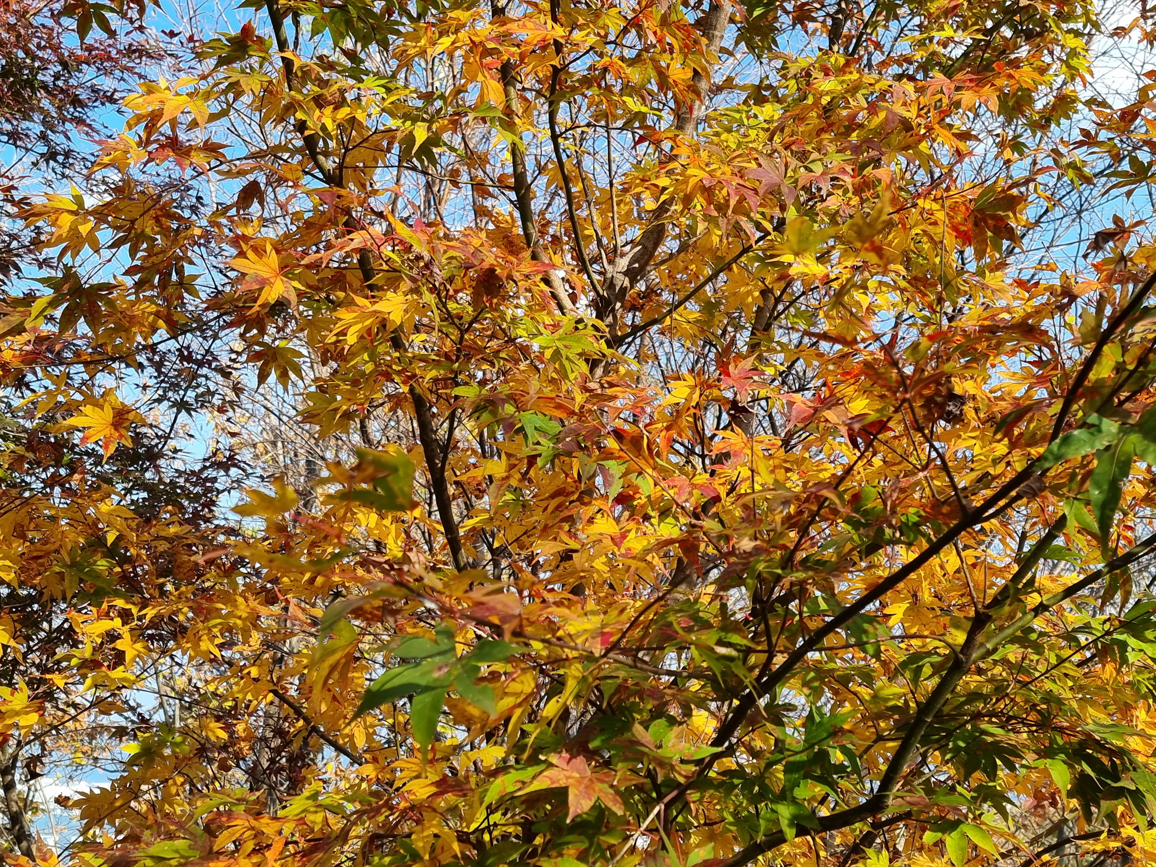주위의 낙엽들이 떨어져 황량함을 느끼지만, 그 황량함에 남아 있는 단풍나무의 단풍은 더욱 이쁘게 눈에 들어온다.