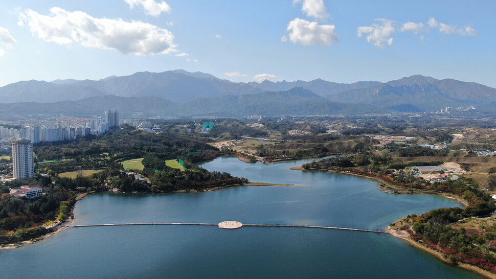 [이순간] 설악이 병풍처럼 둘러싸고, 동해 푸른 바다가 감싸 안은 강원도 속초 영랑호. 10월 어느 날, 가을바람에 물억새가 흔들리고, 윤슬이 쉼 없이 반짝이는 호수. 때아닌 기계음으로 쉬고 있