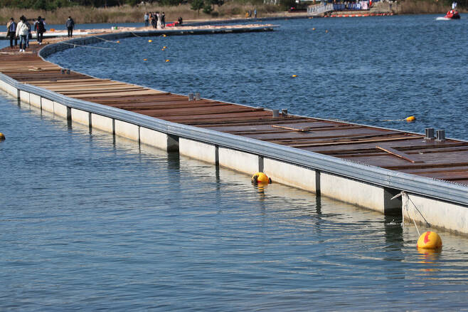호수를 가로지르는 부교 등 생태탐방로 사업이 막바지에 이르고 있다. 이를 놓고 지역 환경·시민단체와 속초시의 뜻이 팽팽히 맞서고 있어 논란이 되고 있다.