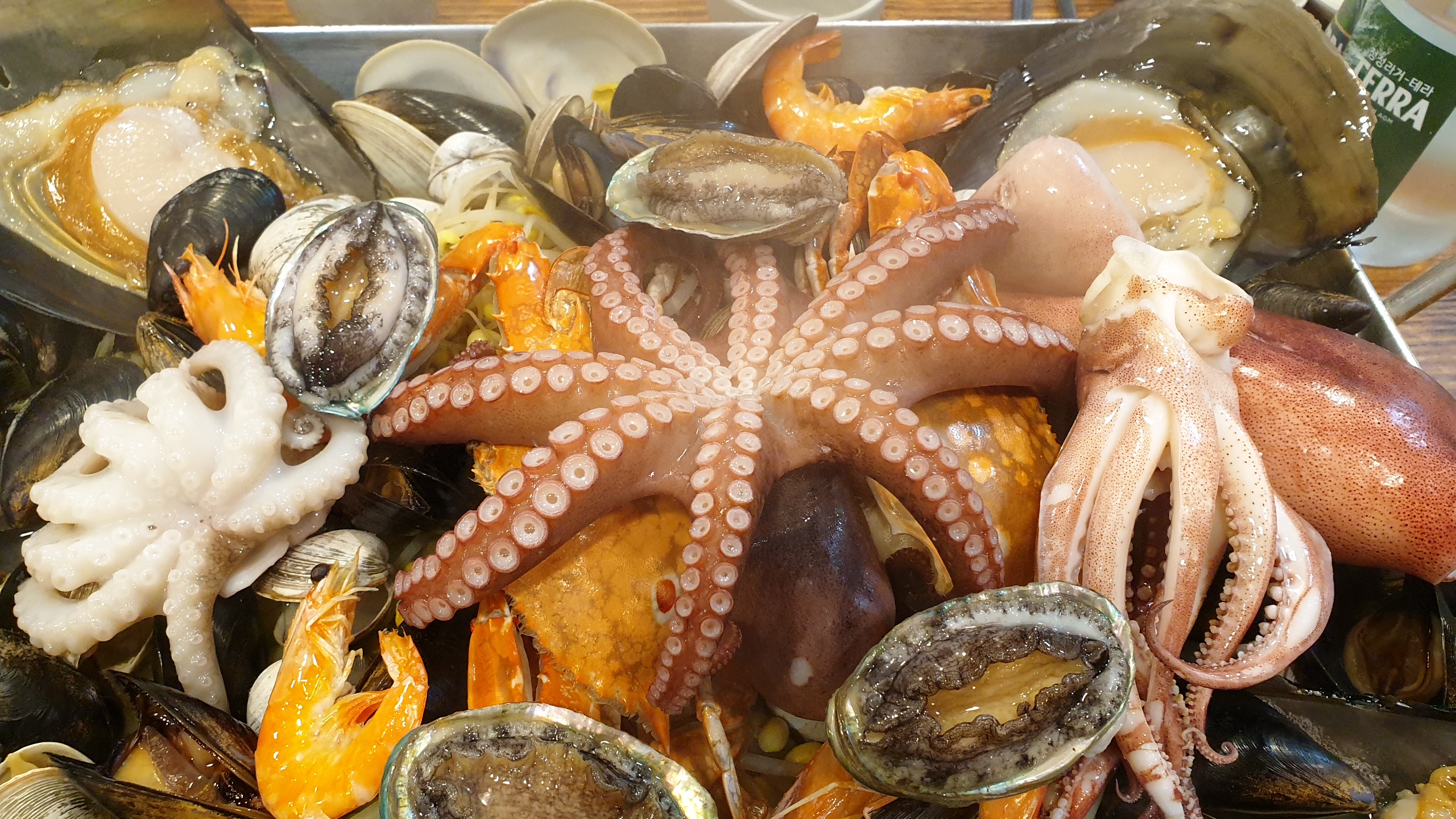 문어, 꼴뚜기, 전복, 조개, 홍합,오징어,가리비 등 해물이 가득한게 보기만해도 침이 절로 넘어갑니다.