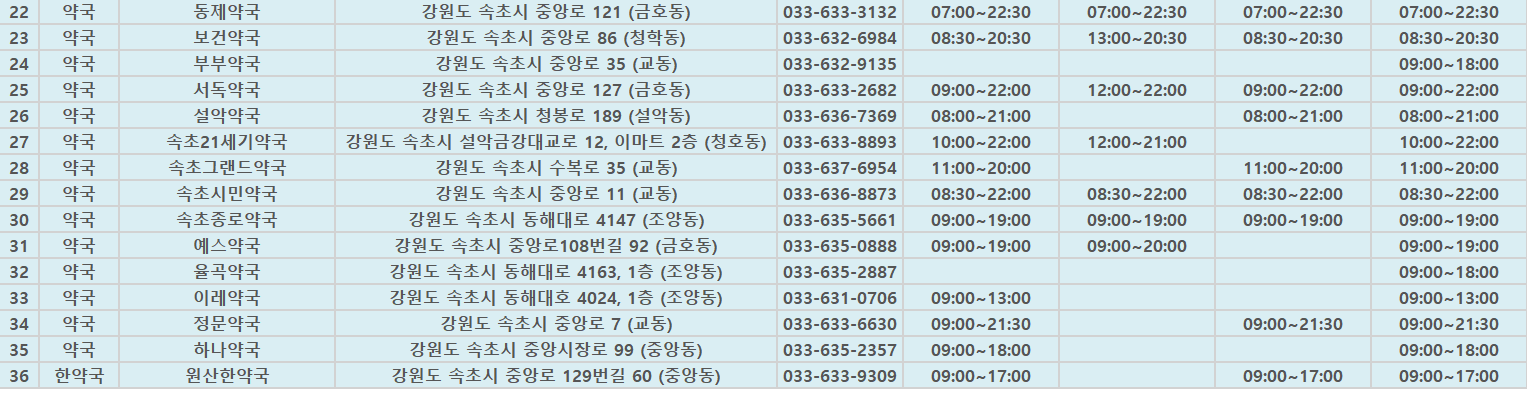 2020 설연휴 속초지역 병원 의원 약국 비상의료 현황입니다.